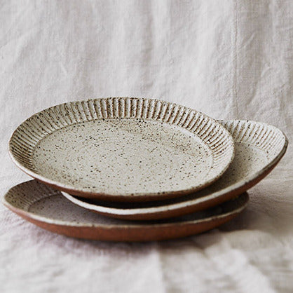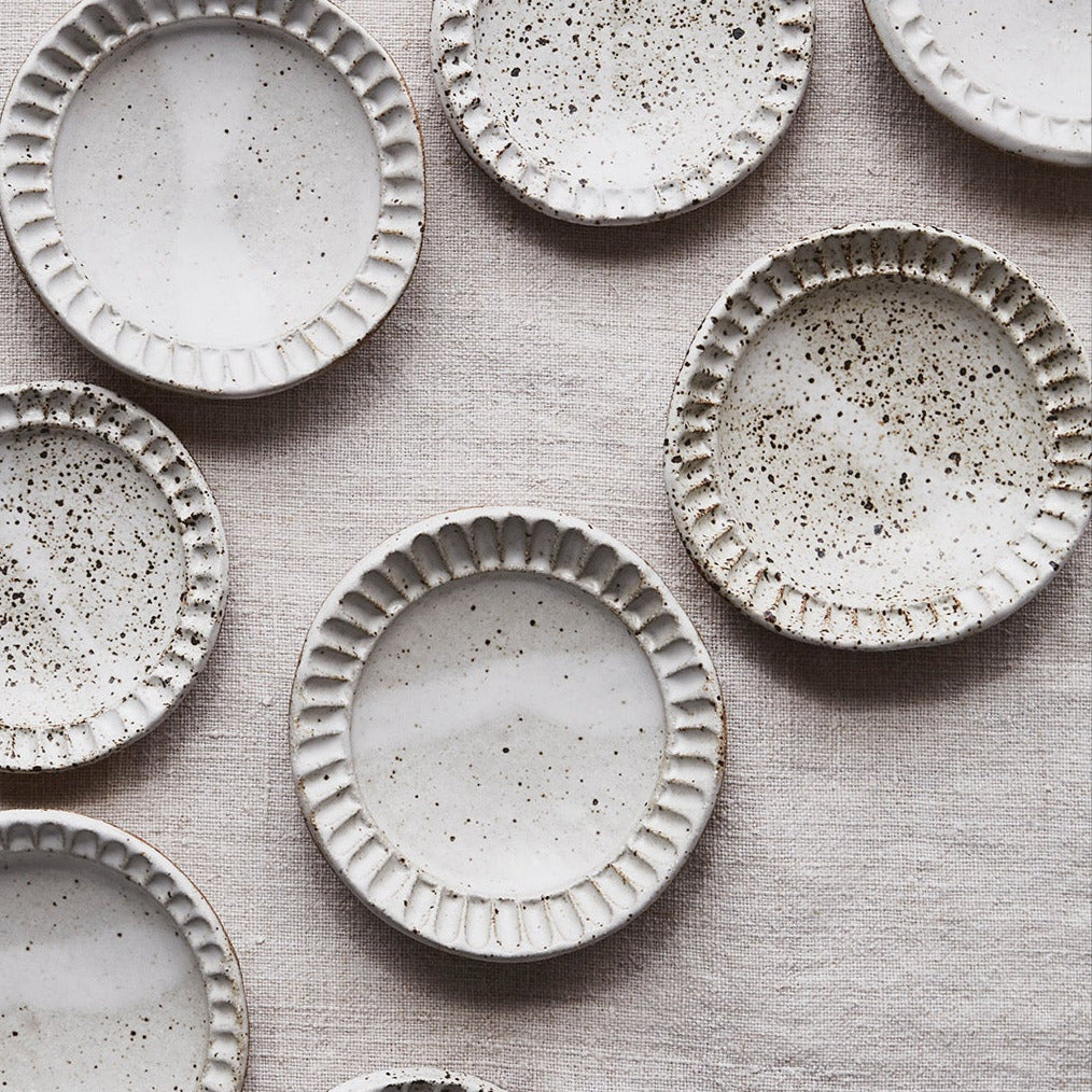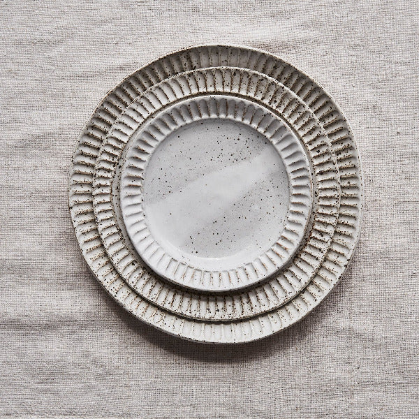 ($220) Fluted dinner plate speckle white x 20 ($100)